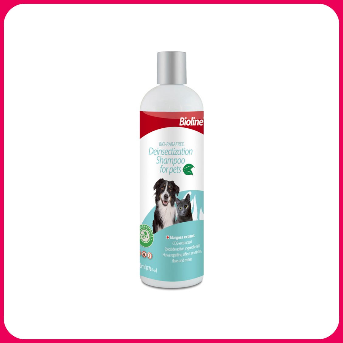 Bioline Deinsectization Shampoo for Pets – A gentle yet effective shampoo designed to remove and prevent parasites such as fleas and ticks. Enriched with soothing ingredients, it cleanses your pet’s coat while helping maintain healthy skin and fur. Safe for regular use on dogs and cats.