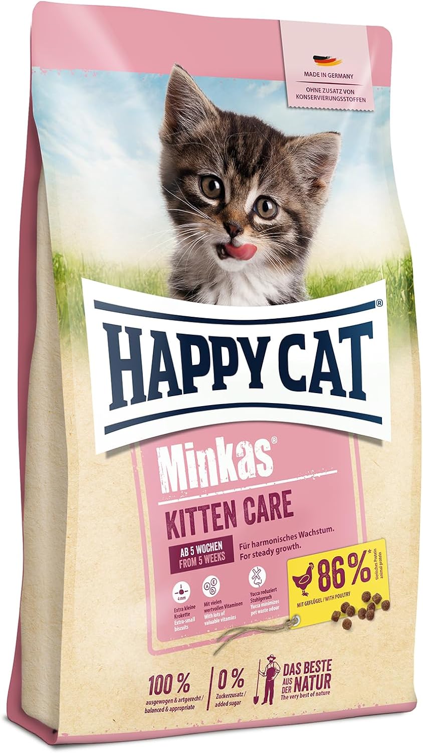Happy Cat Minkas Kitten Care with poultry is a balanced complete food designed to meet the specific needs of kittens from 5 weeks old. With valuable proteins, vital vitamins and omega-3 and omega-6 fatty acids.