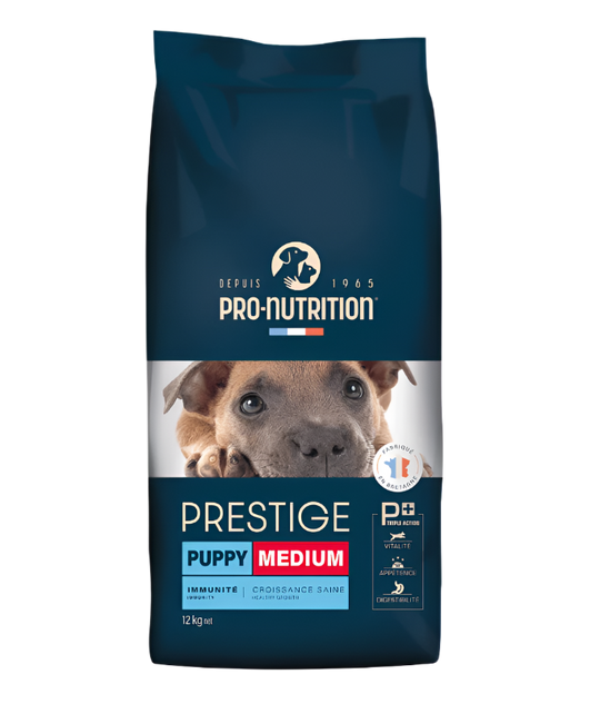 Elevate your medium breed puppies and nursing female dogs with our meticulously crafted complete and balanced food, designed to cater to their unique nutritional needs. Our formula places emphasis on IMMUNITY, incorporating antioxidants such as vitamin E, vitamin C, and selenium, along with yeast extracts to fortify a puppy’s immature immune system. Promote HEALTHY GROWTH with a combination of carefully selected ingredients, including fish oil rich in omega-3, coconut oil, high energy intake, and tailored levels of calcium and phosphorus, contributing to optimal development. Let’s delve into the key features: